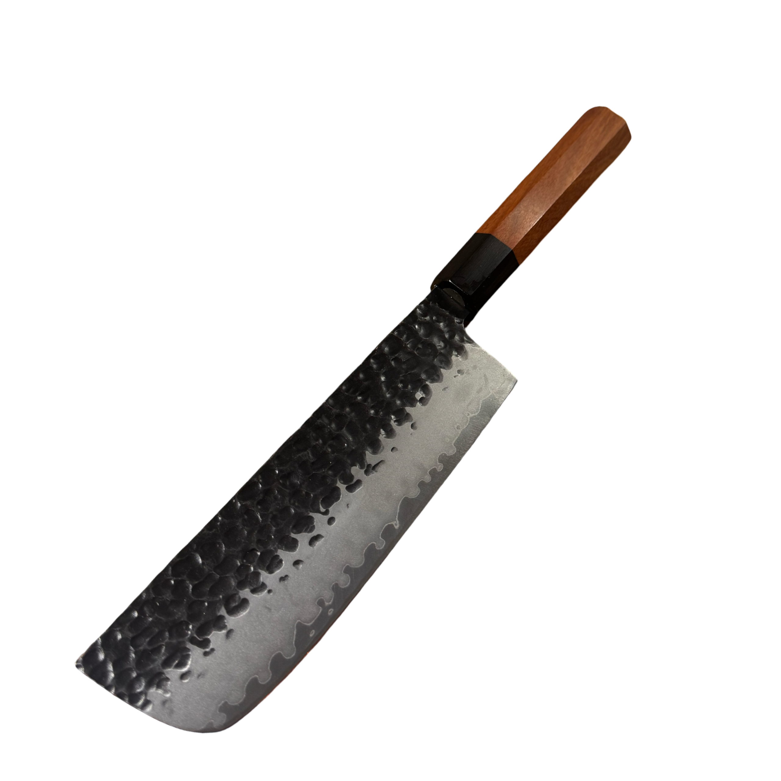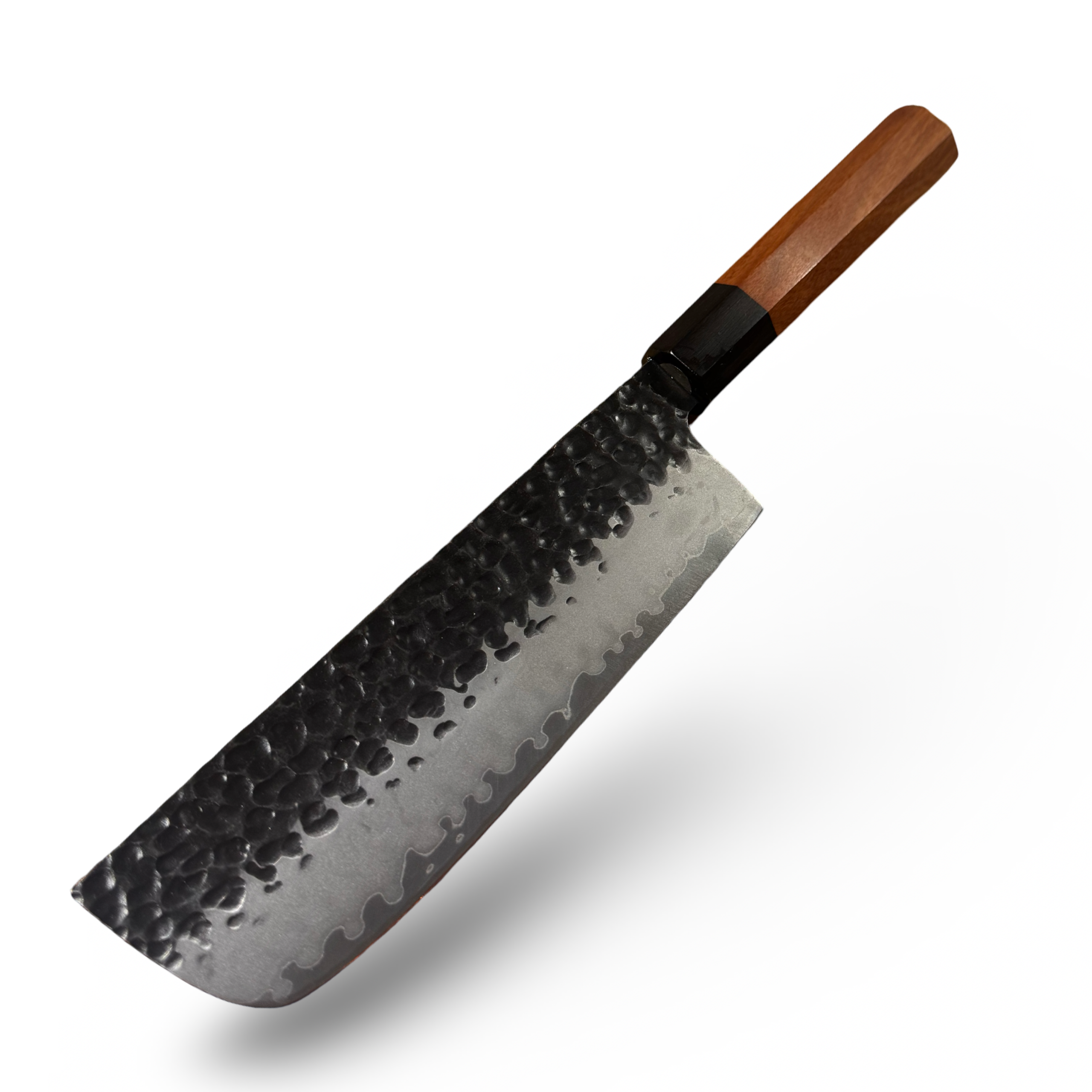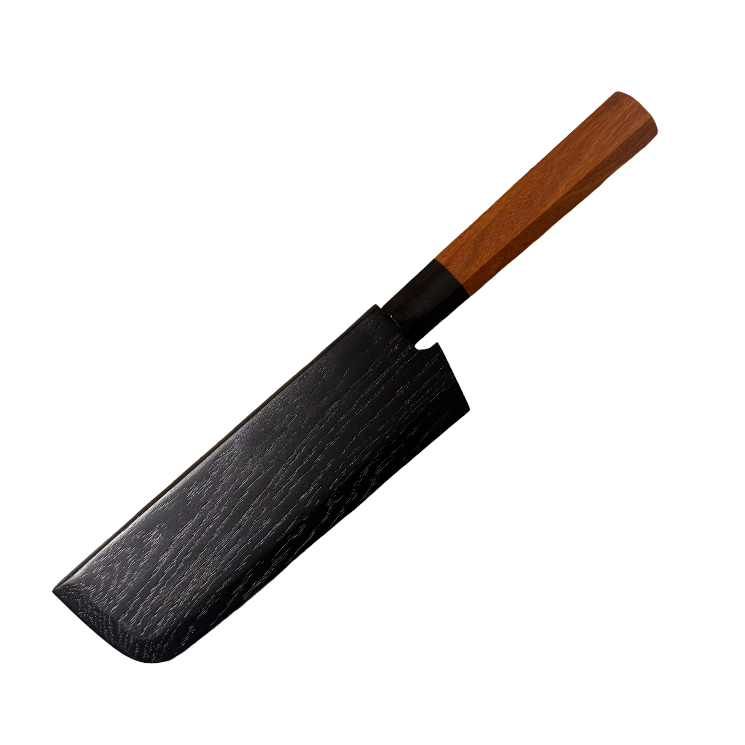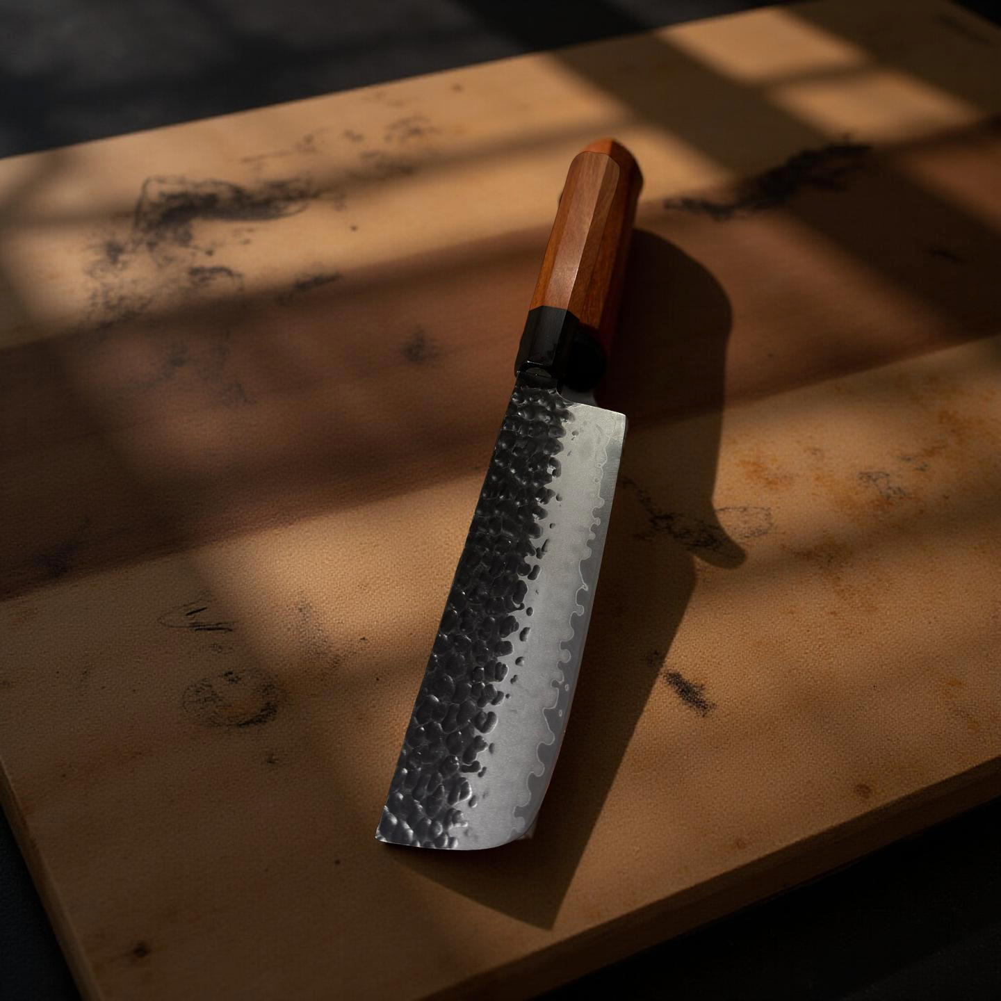 En præcis og alsidig Nakiri i 3-lags stål med hammered (tsuchime) finish og lige skæreeg, perfekt til grøntsager og hurtig hakning. Det lette Wa-håndtag giver balance og kontrol, mens den medfølgende træskede (Saya) beskytter klingen og fuldender det traditionelle japanske udtryk. En effektiv og elegant grøntsagskniv til både hjemmekokke og professionelle.