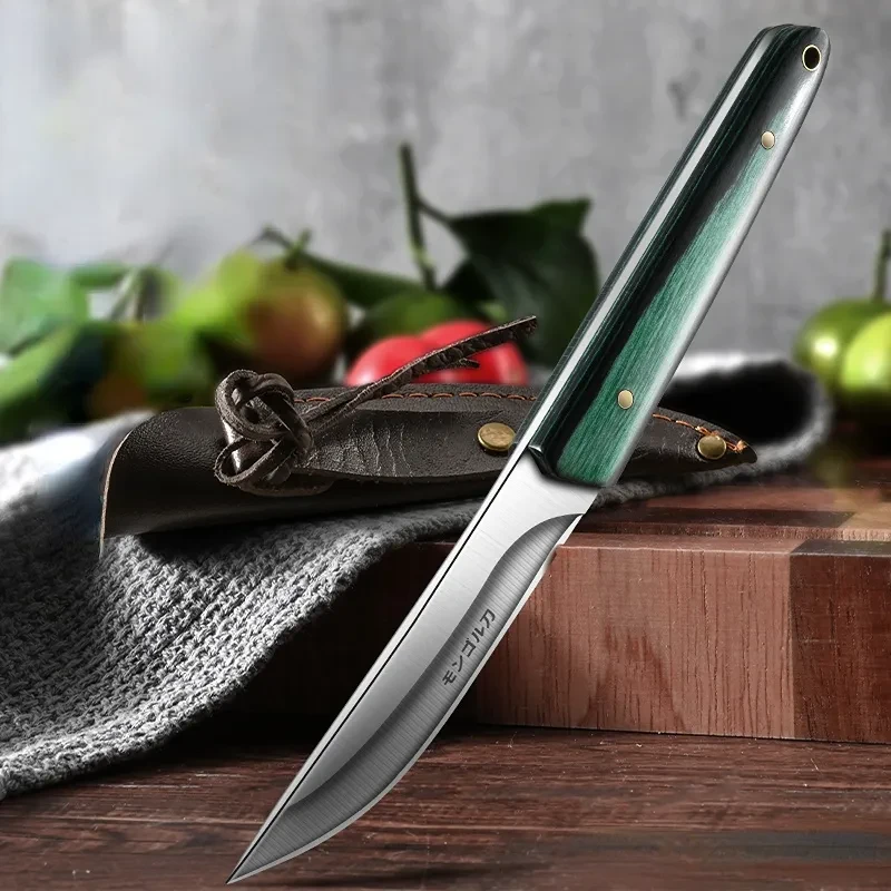 Denne kompakte og alsidige 3-tommer kniv er designet til præcisionsopgaver i køkkenet, såsom at skære urter, frugter og grøntsager. Den kan fåes med både brunt og grønt skæfte.